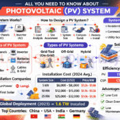A photovoltaic (PV) system converts sunlight into electricity using semiconductor solar cells, producing DC power